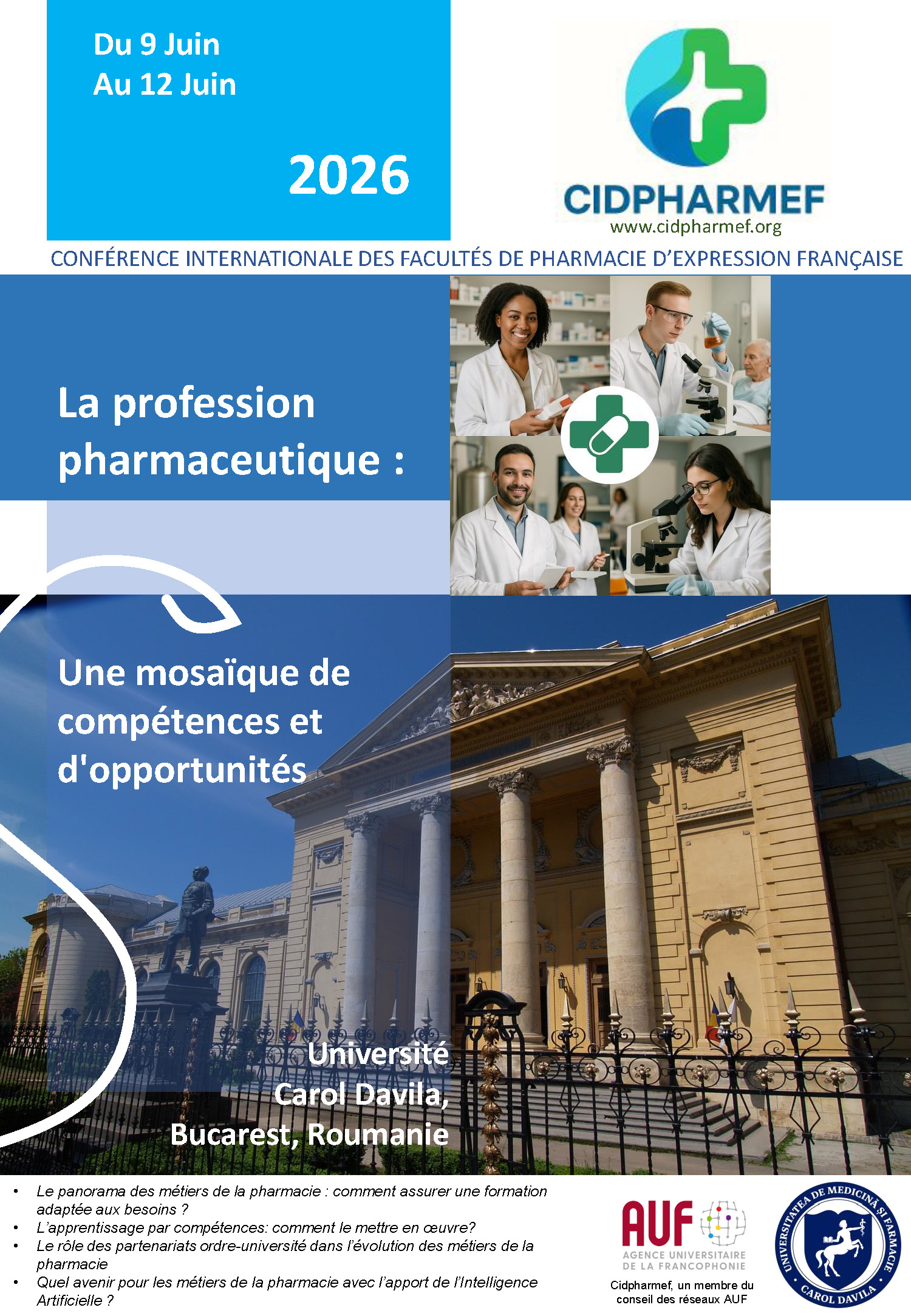 Conférence Cidpharmef 2026 – Bucarest, Roumanie - La profession pharmaceutique : Une mosaïque de compétences et d’opportunités